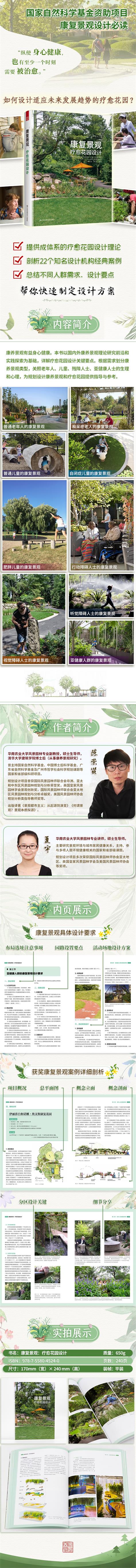 本書(shū)以國(guó)內(nèi)外康養(yǎng)景觀理論研究前沿和實(shí)踐探索為基礎(chǔ),分為五個(gè)章節(jié)對(duì)康養(yǎng)景觀及療愈花園的設(shè)計(jì)進(jìn)行詳細(xì)介紹。第一章主要介紹了康養(yǎng)景觀的相關(guān)概念和理論背景,第二章至第五章主要介紹了老年人、兒童、障礙人士和亞健康人群的康復(fù)景觀設(shè)計(jì)關(guān)鍵要點(diǎn),并結(jié)合優(yōu)秀建設(shè)案例進(jìn)行了詳細(xì)解析,希望能為廣大讀者提供一個(gè)對(duì)康養(yǎng)景觀和療愈花園建設(shè)較為清晰的認(rèn)識(shí)。
