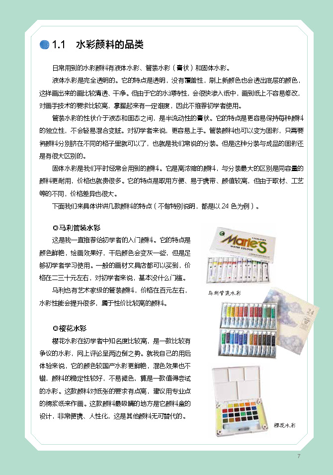 1.1 水彩顏料的品類 7