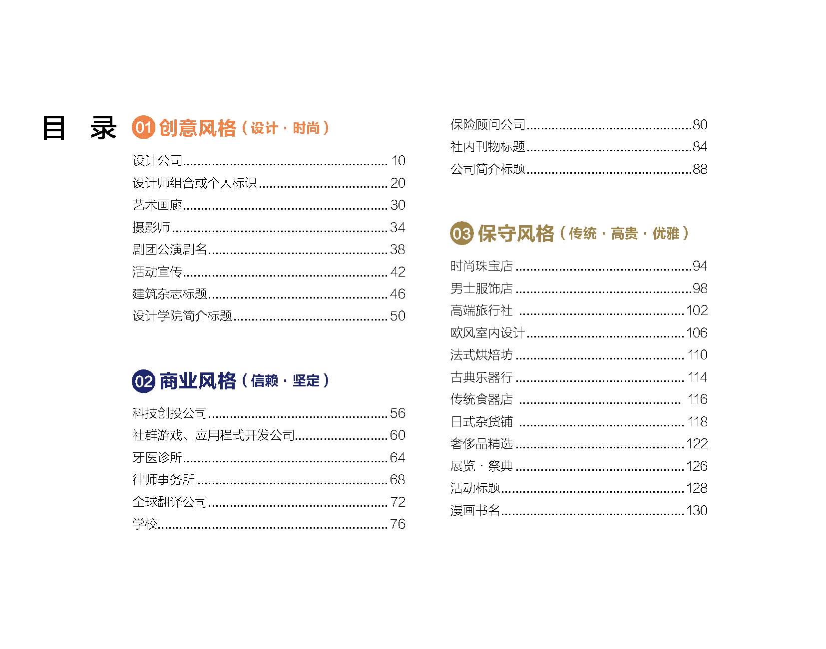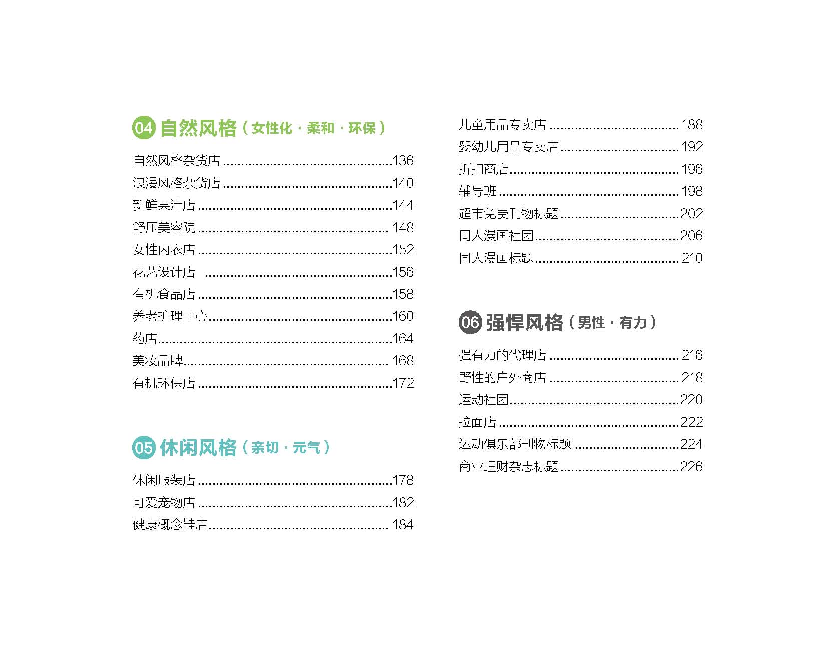 本書收集了五位日本專業(yè)設計師的創(chuàng)意結(jié)晶,完整收錄了超過1000 種LOGO 設計,分為創(chuàng)意風格、商業(yè)風格、保守風格、自然風格、休閑風格、強悍風格等六大類別,而各類別又可細分成56 個主題,包括“設計?時尚”“信賴?堅定”“傳統(tǒng)?高貴?優(yōu)雅”“女性化?柔和?環(huán)保”“親切?元氣”“男性?有力”等,讓你在遇到瓶頸時能透過清楚的分類方式,迅速查閱所需的信息。