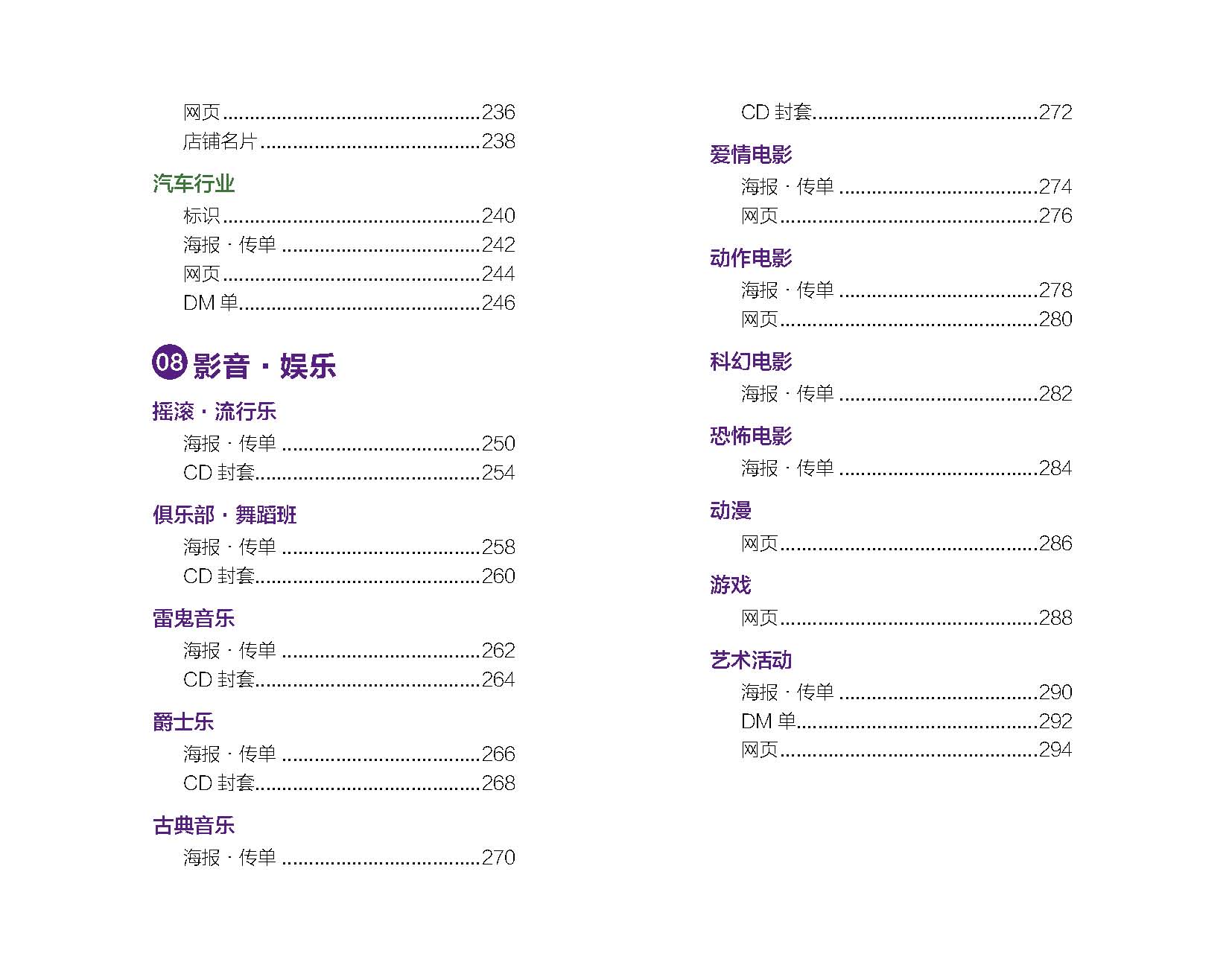 書中將主題分為 8 大類:美食?餐飲、美容?美妝、時(shí)尚?服飾、家居?雜貨、商業(yè)?創(chuàng)意、學(xué)校?醫(yī)療、運(yùn)動?戶外、影音?娛樂。不同主題共包含標(biāo)識、海報(bào)、傳單、DM、網(wǎng)頁、名片、宣傳冊、CD 封面、包裝設(shè)計(jì)、簡介等 12 種配色類型。參照專業(yè)設(shè)計(jì)師接單時(shí),常見的類型、職業(yè)種類精選而成,案例完善且保羅萬象,可隨心所欲地應(yīng)用。是您最完備的配色參考書。