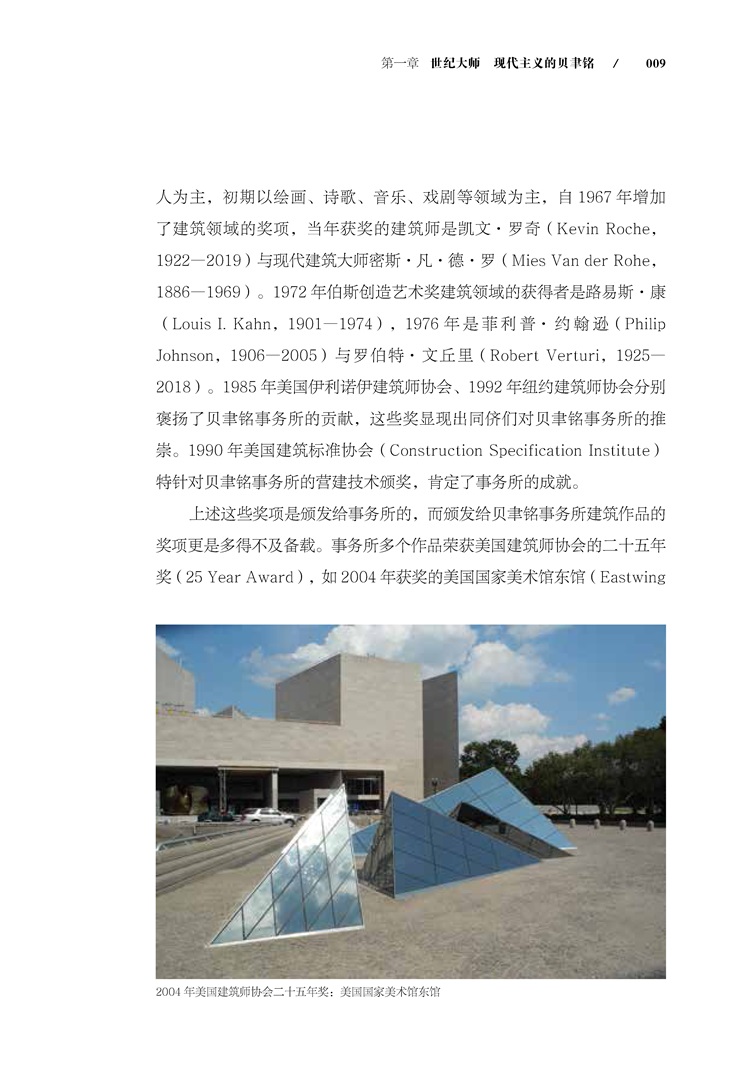 第一章《世紀(jì)大師 現(xiàn)代主義的貝聿銘 》介紹了貝聿銘獲得的獎(jiǎng)項(xiàng)和榮耀,整理歸納了他的作品。
