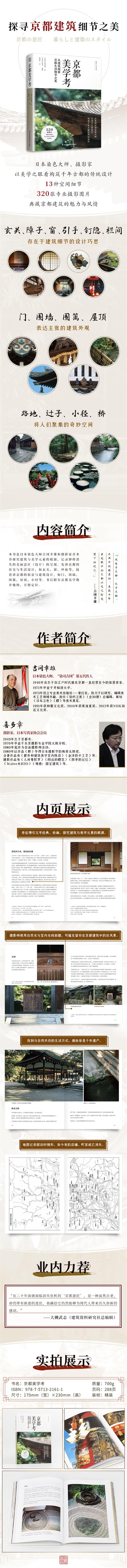 日本染織史家吉岡幸雄,在本書(shū)中以深厚的美學(xué)素養(yǎng)細(xì)數(shù)存在于京都的建筑,探究建筑與美學(xué)元素的根源,記錄面臨消失危機(jī)的美麗日本傳統(tǒng)風(fēng)景。全書(shū)分為兩個(gè)篇章,第一章講述京都的住宅與生活設(shè)計(jì),如玄關(guān)、窗、坪庭等;第二章講述京都的街景與建筑設(shè)計(jì),如門(mén)、塀、垣、屋頂、小徑等。全書(shū)收錄超過(guò)320張專(zhuān)業(yè)攝影照片,并附有京都美學(xué)散步地圖,讀者可從攝影師喜多章所拍攝的珍貴照片中,窺見(jiàn)留存在京都建筑中的懷舊風(fēng)景與裝點(diǎn)京都街道的日本傳統(tǒng)設(shè)計(jì)。