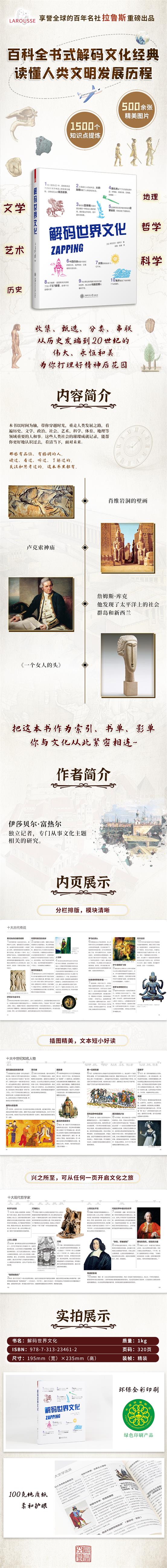 ● 本書是法國百年大社——拉魯斯的又一傾心力作,拉魯斯所開創(chuàng)的百科全書事業(yè)使其聞名于世。本書可謂一本有關世界文化的百科全書類著作。