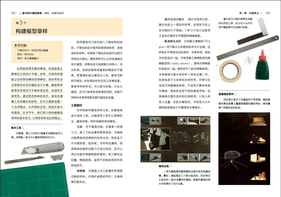 如果你是一名設(shè)計(jì)專業(yè)的學(xué)生,那么翻開(kāi)本書(shū)就像翻開(kāi)一本標(biāo)準(zhǔn)意義上的教材。這本書(shū)從設(shè)計(jì)基本功講起,教你如何構(gòu)思、如何用筆畫出想法,用常見(jiàn)的材料以及軟件輔助做出模型,之后便進(jìn)階到設(shè)計(jì)項(xiàng)目,將客戶的想法落地是這階段的重中之重,而與客戶溝通便要借助概念版與模型草樣以及設(shè)計(jì)師良好的表達(dá)能力。在項(xiàng)目施工階段,結(jié)構(gòu)性與非結(jié)構(gòu)性設(shè)計(jì)關(guān)乎建筑組件、材料、水電氣施工、照明、室內(nèi)配色等方方面面。最后,本書(shū)專辟一章,教授“準(zhǔn)設(shè)計(jì)師”們?nèi)绾谓⒆约旱穆殬I(yè)檔案,為求職、簽單做好充足的準(zhǔn)備。