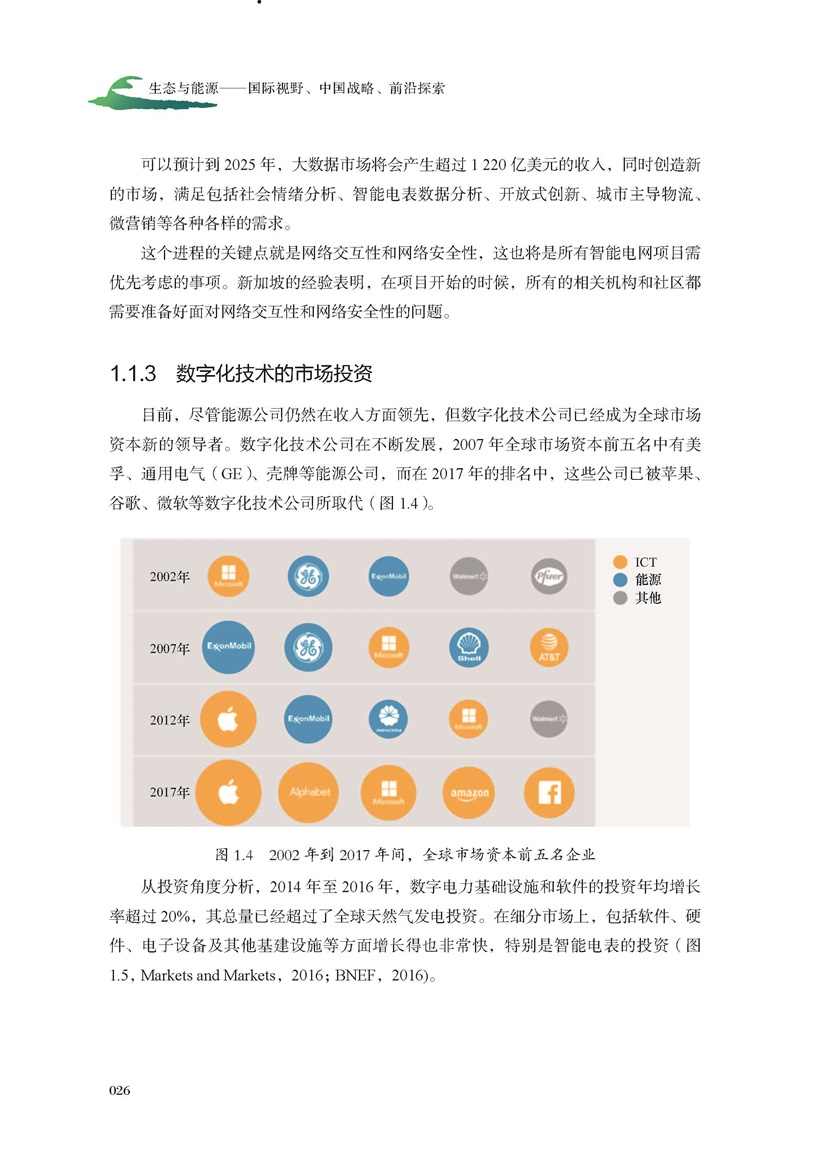全書共11章,分別是:智慧能源的大數(shù)據(jù)轉換及連接;發(fā)達國家可再生能源生產的經驗借鑒;能源與環(huán)境科學的前沿趨勢;關于全球碳不均衡以及氣候變化適應性和減緩;模擬和檢測國民幸福指數(shù)及生態(tài)可持續(xù)性;水資源保護的生態(tài)學意義與新能源技術應用;新能源與未來智能交通技術探索;城市化對區(qū)域生態(tài)系統(tǒng)的影響與城市可持續(xù)發(fā)展的轉型;未來能源系統(tǒng)展望:從資源能源到智慧能源;生態(tài)經濟均衡發(fā)展的可持續(xù)智慧氣候農業(yè);生態(tài)修復的景觀空間格局研究及設計。