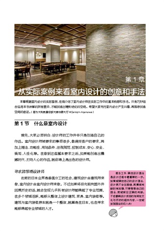 五位作者都是領域內專家,活躍于設計一線。作者從實際業(yè)務出發(fā),添加了大量其他教科書里找不到的、專家掌握的訣竅和知識。di 1章和di 13章列舉實際案例,進行淺顯易懂地概括,第2章詳細記錄了復雜的業(yè)務流程的入門方法。其他章節(jié)的內容同樣都是學習室內設計時不可或缺的知識。特別是正文右邊的邊框中,來自“紅面包老師”的注解,更是專家毫無保留傳授的實踐技巧,里面藏著能讓大家在將來成為youxiu設計師的啟示。