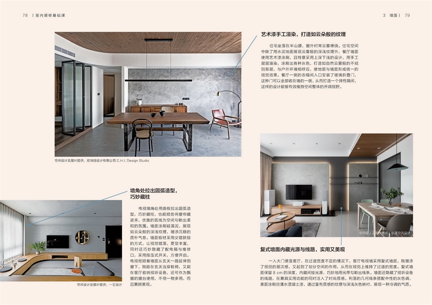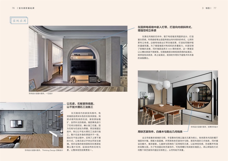 ★實例應用搭配實景圖,詳解裝修需求。眾多實景配圖,拉出引線指向細節(jié)注意事項,設計巧思清晰明了。