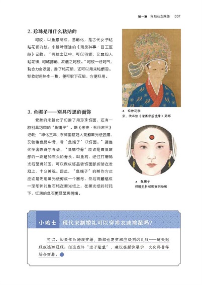 此外,本著“鏈接古今、古為今用”的初衷,每個(gè)場(chǎng)景的結(jié)尾,都有一個(gè)實(shí)用的“穿搭指南小貼士”。怎么固定披帛?怎么搭配鞋子??jī)和瘽h服怎么選?宋制婚服怎么選?希望能為讀者穿著漢服時(shí)的疑惑提供建議和參考。