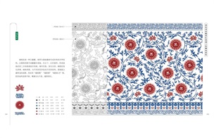 本書方形開本,封面裝幀精美,膚感膜燙金,壓凹工藝,四色特種紙彩印,還原紋樣設(shè)計(jì)細(xì)節(jié)。