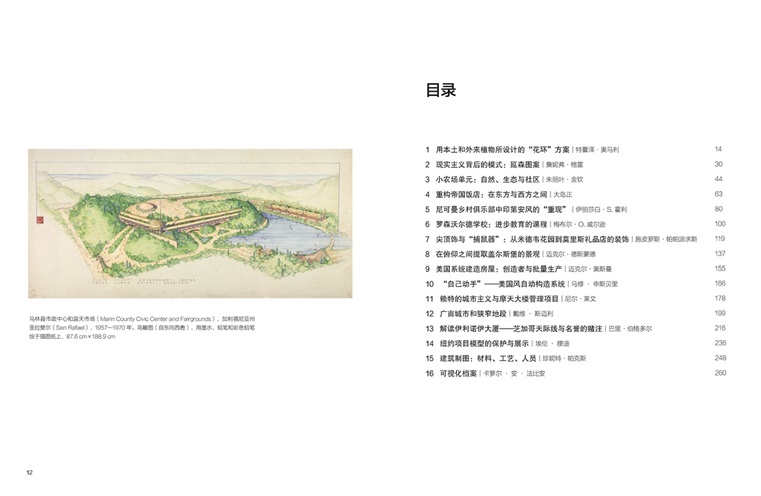 本書共有五個專題,從“自然”“文化”“建造”“城市規(guī)劃”以及“賴特檔案”五個方面對賴特的建筑理念、建造方式以及民主理想進行解讀,涉及眾多賴特的知名項目,包括流水別墅、古根海姆博物館;以及未建成的規(guī)劃,如小農市場、廣畝城市等。許多圖紙還是初次公開,具有很高的學術價值。