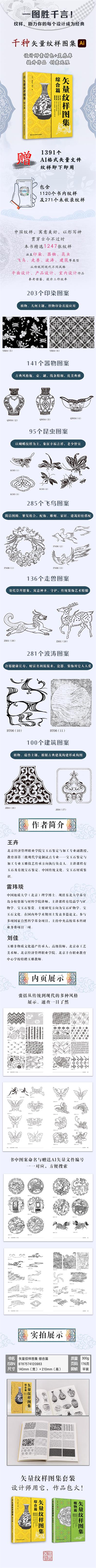 本書收集了1247 張印染、器物、動物、波濤、建筑五種不同類型的紋樣,圖集內(nèi)的圖片是作者團(tuán)隊在日常的教學(xué)工作中收集整理而成并繪制了書內(nèi)圖片的矢量AI格式,本圖集側(cè)重實用性,根據(jù)應(yīng)用類型進(jìn)行分類,從傳統(tǒng)到現(xiàn)代的圖片風(fēng)格均囊括在內(nèi),沒有從紋樣的歷史及文化背景進(jìn)行追根溯源。同時,隨圖集還贈送1000張書內(nèi)收錄圖片的矢量格式文件及額外贈送了200余張其他圖片的矢量格式,具有較高的實用價值,希望本圖集為讀者在實際工作中提供便利。