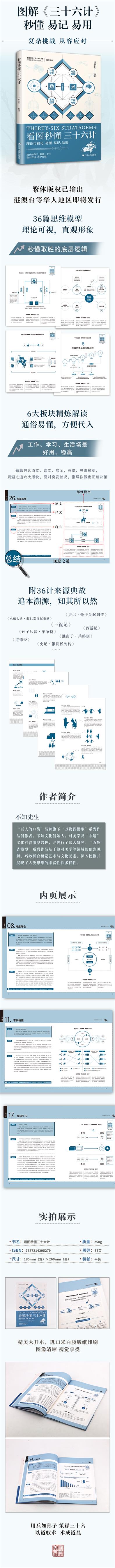 《三十六計(jì)》,或稱《三十六策》,是一部兵法奇書,語(yǔ)源于南北朝,成書于明清。記載了三十六條兵法計(jì)謀。本書是基于《三十六計(jì)》原著上,進(jìn)行視覺語(yǔ)言翻譯給讀者,輔助讀者延長(zhǎng)記憶的時(shí)間,便于讀者去理解。書中每個(gè)章節(jié)主要包含:原文、譯文、啟示、總結(jié)、思維模型和規(guī)避之道這幾個(gè)部分組成,將艱澀的古代語(yǔ)言簡(jiǎn)潔化、可視化,易懂、易記、易用。以精簡(jiǎn)清晰的視覺解讀,來提煉核心思想,有助于讀者快速入門,從而啟迪智慧,提升認(rèn)知。