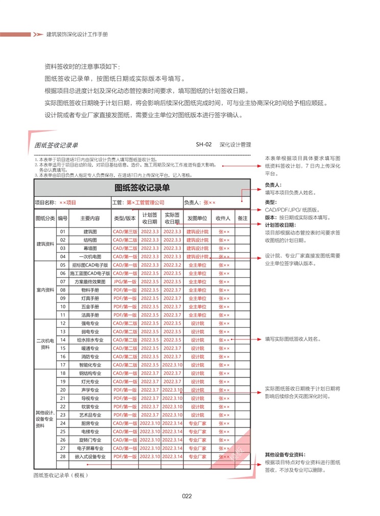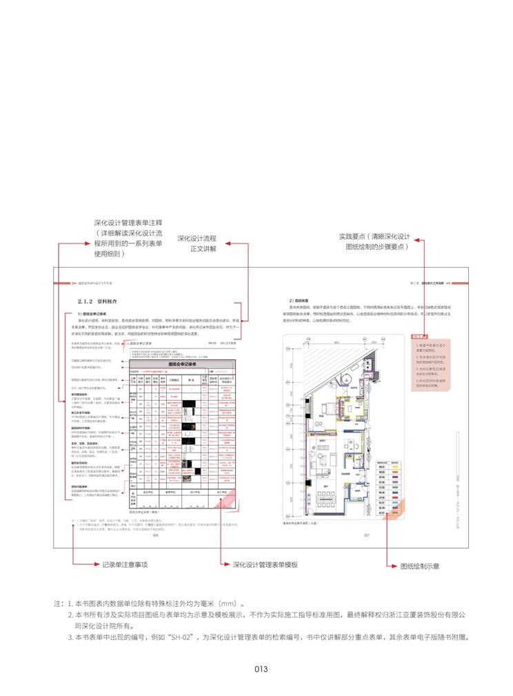 本手冊(cè)系統(tǒng)闡述了裝飾深化設(shè)計(jì)工作的標(biāo)準(zhǔn)流程,總結(jié)歸納深化設(shè)計(jì)在裝飾工程全過程中的六項(xiàng)關(guān)鍵階段,貫穿項(xiàng)目全周期。根據(jù)大量深化設(shè)計(jì)項(xiàng)目的經(jīng)驗(yàn)積累,沉淀深化設(shè)計(jì)成果與數(shù)據(jù),通過工具表單、標(biāo)準(zhǔn)樣圖及案例說明來詳細(xì)講解項(xiàng)目各階段每一個(gè)深化標(biāo)準(zhǔn)動(dòng)作,指導(dǎo)一線深化設(shè)計(jì)人員把深化設(shè)計(jì)做好;同時(shí)協(xié)助項(xiàng)目深化負(fù)責(zé)人進(jìn)行動(dòng)態(tài)管控,共同把深化設(shè)計(jì)做強(qiáng)。