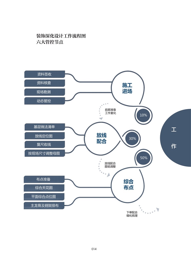 深化設(shè)計(jì)是裝飾工程項(xiàng)目中的重要環(huán)節(jié)。其內(nèi)容是在各專業(yè)設(shè)計(jì)資料提供現(xiàn)場(chǎng),完善技術(shù)圖紙、現(xiàn)場(chǎng)技術(shù)指導(dǎo),協(xié)調(diào)配合各專業(yè)單位,減少項(xiàng)目不必要的成本與工期浪費(fèi),保證落地質(zhì)量與效果滿足業(yè)主要求,充分發(fā)揮項(xiàng)目從設(shè)計(jì)到落地的“中場(chǎng)發(fā)動(dòng)機(jī)”作用。
