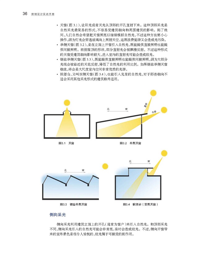 3.應用及案例研究。第十一章到第十六章針對幾種主要建筑類型中的典型照明設計問題進行具體闡述,包括住宅建筑、辦公建筑、教育機構建筑、醫(yī)療建筑、商業(yè)建筑、酒店建筑;第十七章還討論了部分公共空間的照明設計,例如衛(wèi)生間、走廊以及機場候機區(qū);第十八章介紹了室外照明設計;而第十九章討論的是對已有建筑進行翻新時可能會遇到的問題。其中包含了很多案例研究,覆蓋了眾多典型房間和空間。它對設計問題、解決方案以及背后的設計邏輯都做了詳細闡述。