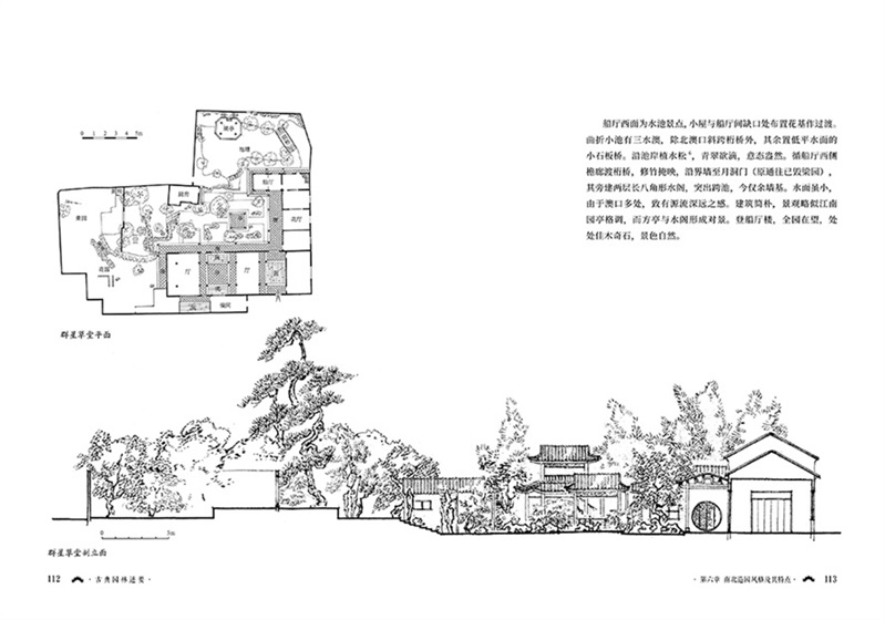 夏教授對(duì)中國(guó)古典園林的研究不只囿于懷古,而是吸收豐富素材,孕生現(xiàn)代建筑創(chuàng)作新風(fēng)格。全書分為八篇,其中專設(shè)“南北造園風(fēng)格及其特點(diǎn)”章節(jié)。早在20世紀(jì)30年代,作者就曾與梁思成、劉敦禎、盧奉璋先生一起,考察江南一帶的私家園林,50—60年代又做了深入的調(diào)查研究。因此,此章論述具有相當(dāng)?shù)臋?quán)威性和啟發(fā)性,它傳承、發(fā)揚(yáng)和發(fā)展了以《園冶》和計(jì)成、李漁等為代表的中國(guó)古典園林學(xué)理論和實(shí)踐的精華。