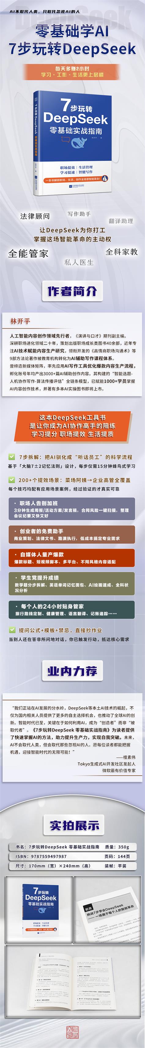在AI技術席卷全球的今天,如何快速掌握智能工具,讓科技真正為效率賦能?本書《7步玩轉DeepSeek 零基礎實戰(zhàn)指南》正是你需要的實戰(zhàn)手冊!