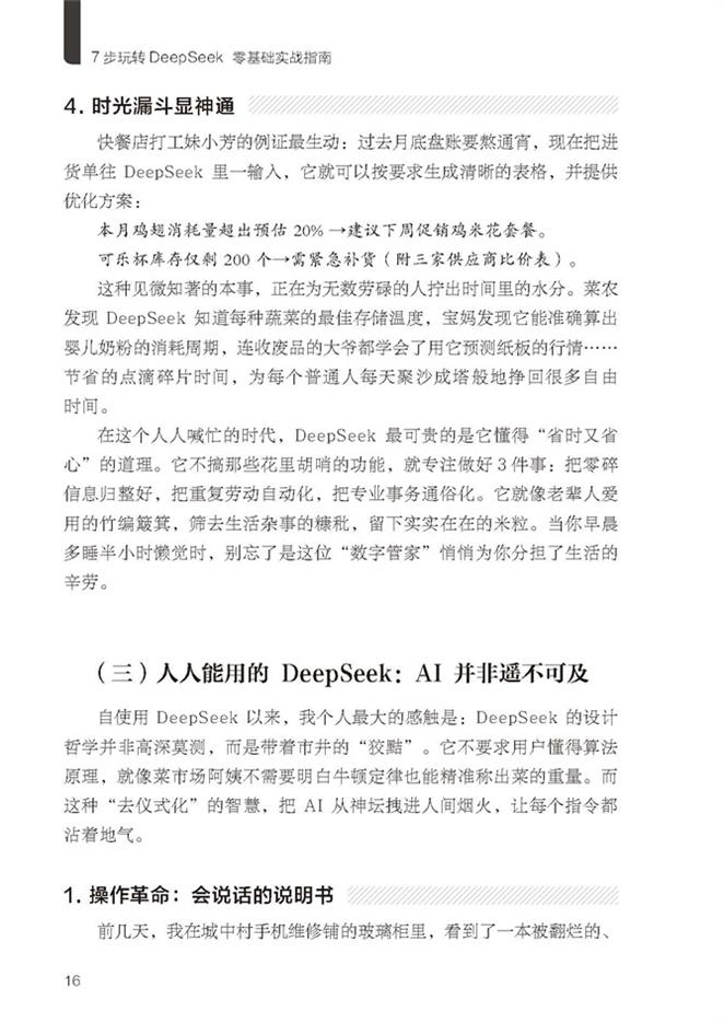 書中的“角色扮演提問法”“連續(xù)追問技巧”等進(jìn)階秘籍,將助你突破普通用戶的認(rèn)知邊界,成為真正的AI協(xié)作高手。翻開本書,讓DeepSeek智能助手為你每天多賺2小時(shí)!