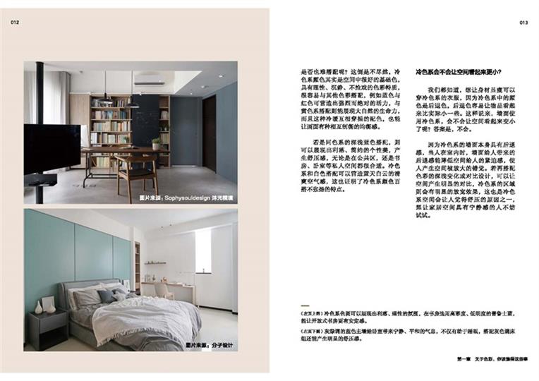 二章:家的配色,你可以這樣做。實(shí)用配色心法與技巧。這是本書的精華所在。本章提供了堅(jiān)實(shí)的邏輯框架與10個(gè)易上手的實(shí)用技巧——從不會(huì)出錯(cuò)的三色比例,到生動(dòng)活潑的互補(bǔ)色搭配;從和諧的單色漸變,到利用光線與材質(zhì)為黑白灰賦予層次感。讓你在感性與理性之間找到平衡,掌握配色的主動(dòng)權(quán)。