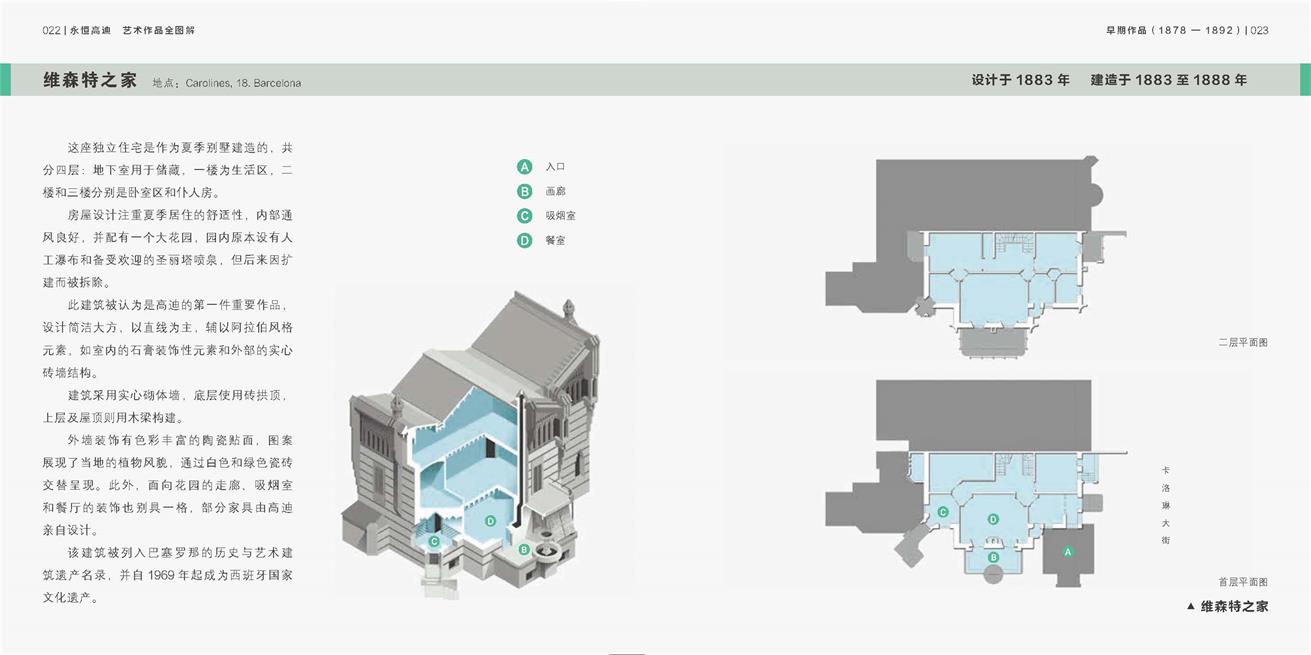 特別珍貴的是,書中收錄了大量鮮為人知的項目資料,包括古埃爾工業(yè)村教堂地下室等較少被關(guān)注的作品,以及多個未實現(xiàn)的設(shè)計方案。全書配以專業(yè)建筑師撰寫的詳細解說,配合精心編排的高清圖片,從整體結(jié)構(gòu)到細部裝飾,多視角展示高迪作品中流動的曲線、自然的靈感與精湛的工藝。