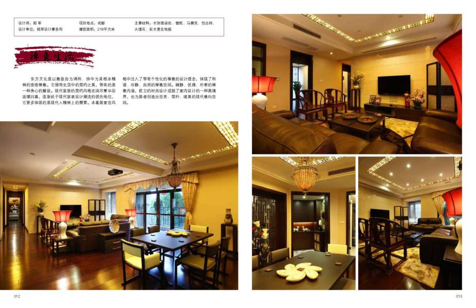 本書室內(nèi)項目均為東方風情風格,充分體現(xiàn)了東方人的優(yōu)雅和含蓄,在不經(jīng)意間流露出東方人獨特的審美和智慧。書中以圖文并茂的形式闡述各項具有代表意義的設(shè)計作品,并從多角度對各個作品進行解析。
