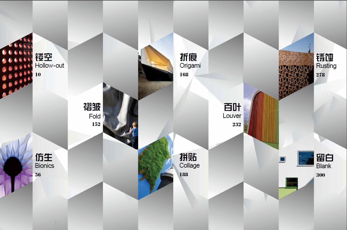 1.立意新。首次將“藝術(shù)墻”作為一種立面材料設(shè)計語言,提出8個新立面技藝概念,并將100個新銳項目圍繞這個核心,娓娓展示出來。