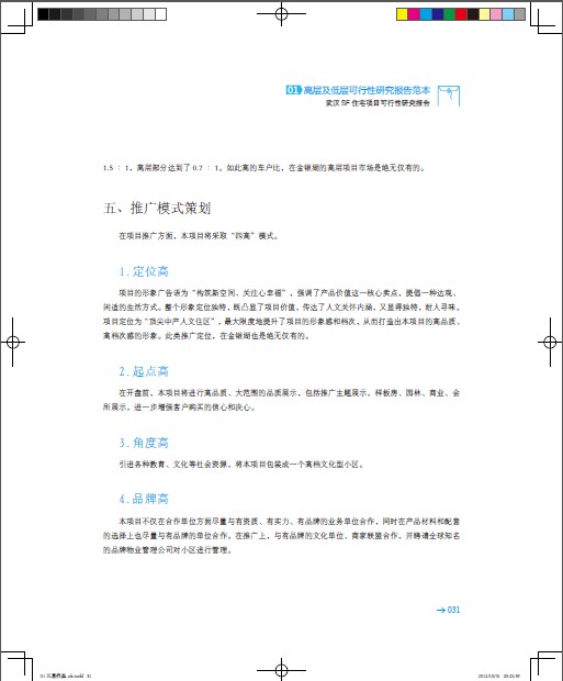 本叢書從房地產(chǎn)項(xiàng)目的開發(fā)流程入手,分別從可行性研究、前期策劃、營銷推廣策劃、招商運(yùn)營策劃四個(gè)階段結(jié)合31套翔實(shí)經(jīng)典的案例報(bào)告,分解房地產(chǎn)項(xiàng)目的開發(fā)設(shè)計(jì)流程,為讀者提供房地產(chǎn)項(xiàng)目開發(fā)流程中每個(gè)階段的策劃報(bào)告范本。