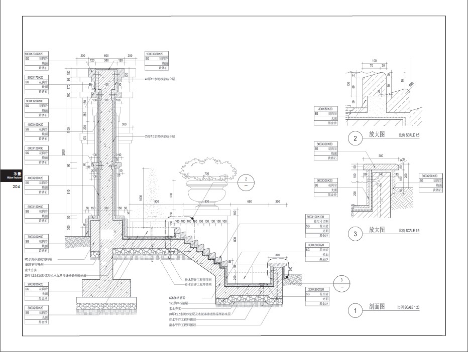 全書共有6冊,本冊包含了道牙、駁岸、排水、臺階、泳池、隱形消防通道、鋪地結(jié)構(gòu)、欄桿等元素的設(shè)計(jì)案例,是全書中包含類別最多的一個(gè)分冊。