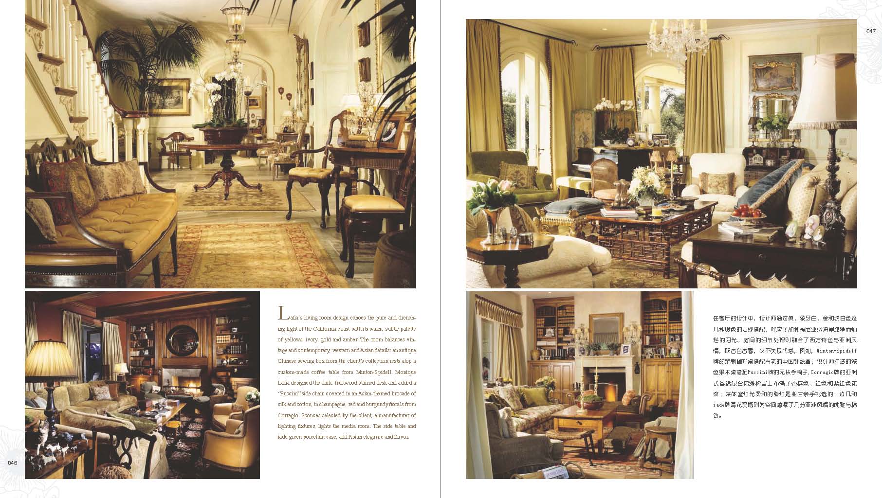 《戀戀鄉(xiāng)村風(fēng)》一書(shū)收集了幾十個(gè)來(lái)自歐美的鄉(xiāng)村風(fēng)格案例,其中不乏像Timothy Corrigan、Jamie Drake和Kelley Proxmire這樣知名的設(shè)計(jì)師和獲獎(jiǎng)大戶,案例均為原汁原味的鄉(xiāng)村風(fēng)格別墅和豪宅,裝飾細(xì)節(jié)多而且精細(xì)。本書(shū)按照“英式鄉(xiāng)村”、“美式鄉(xiāng)村”、“法式鄉(xiāng)村”和“現(xiàn)代鄉(xiāng)村”四種鄉(xiāng)村風(fēng)格的分支制作了案例索引,并且每個(gè)案例都有特征說(shuō)明。