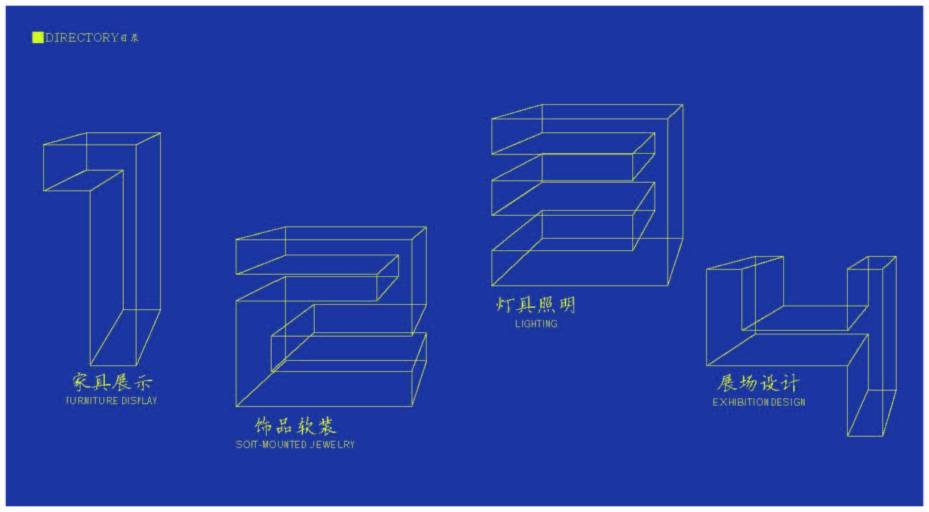1.分為家具展示、飾品軟裝、燈具照明、展場設(shè)計(jì)四個部分。