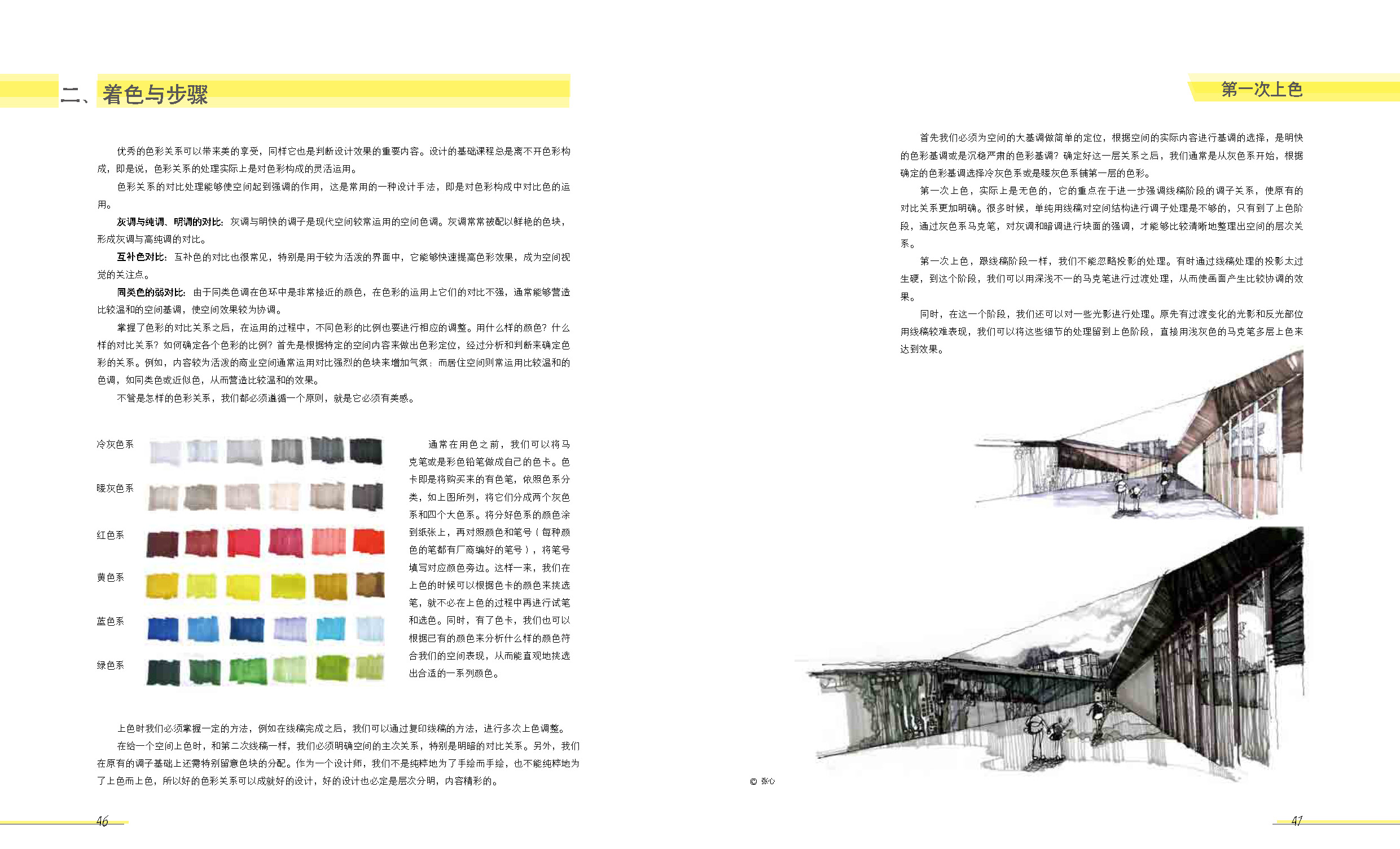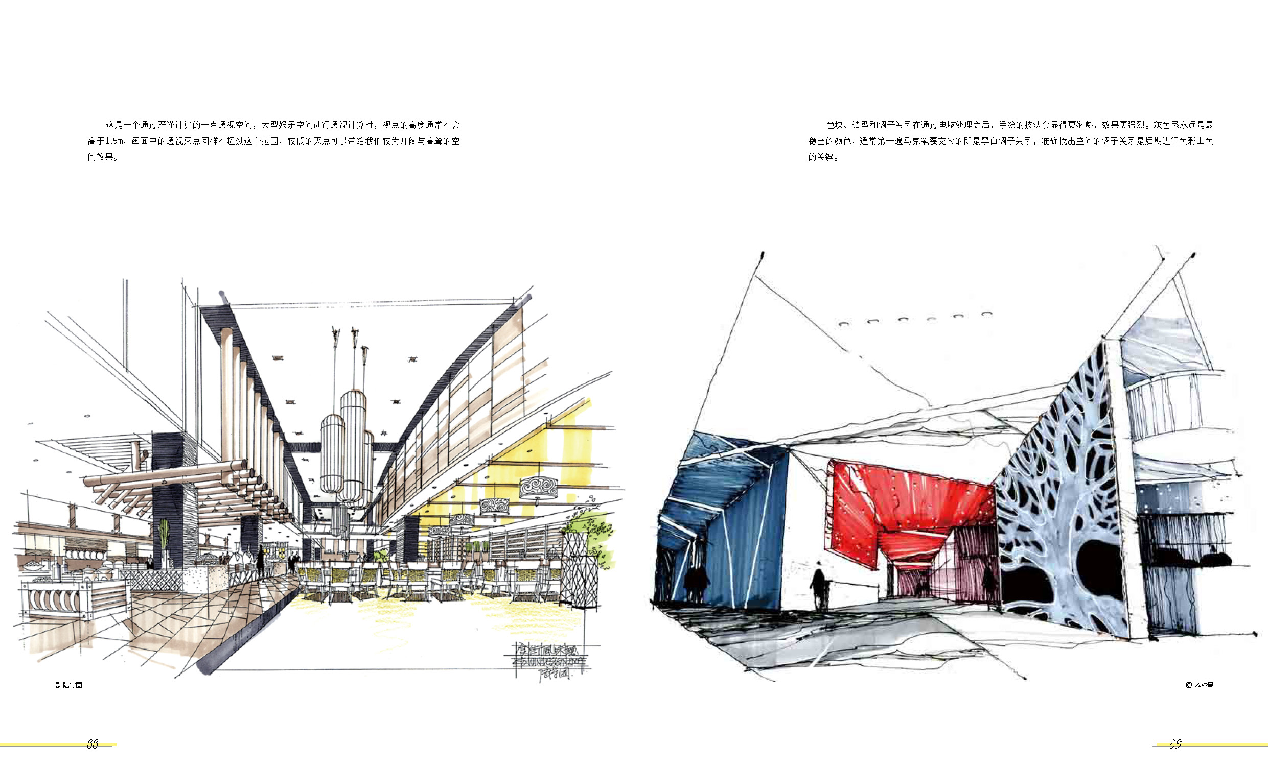 1、內(nèi)容全面,除了室內(nèi)外手繪效果圖的基礎(chǔ)知識點(diǎn),包括透視、調(diào)子、單體表達(dá)、局部組合、立面造型、手繪步驟、概念手繪、主題空間表現(xiàn)、風(fēng)格表現(xiàn)等內(nèi)容。