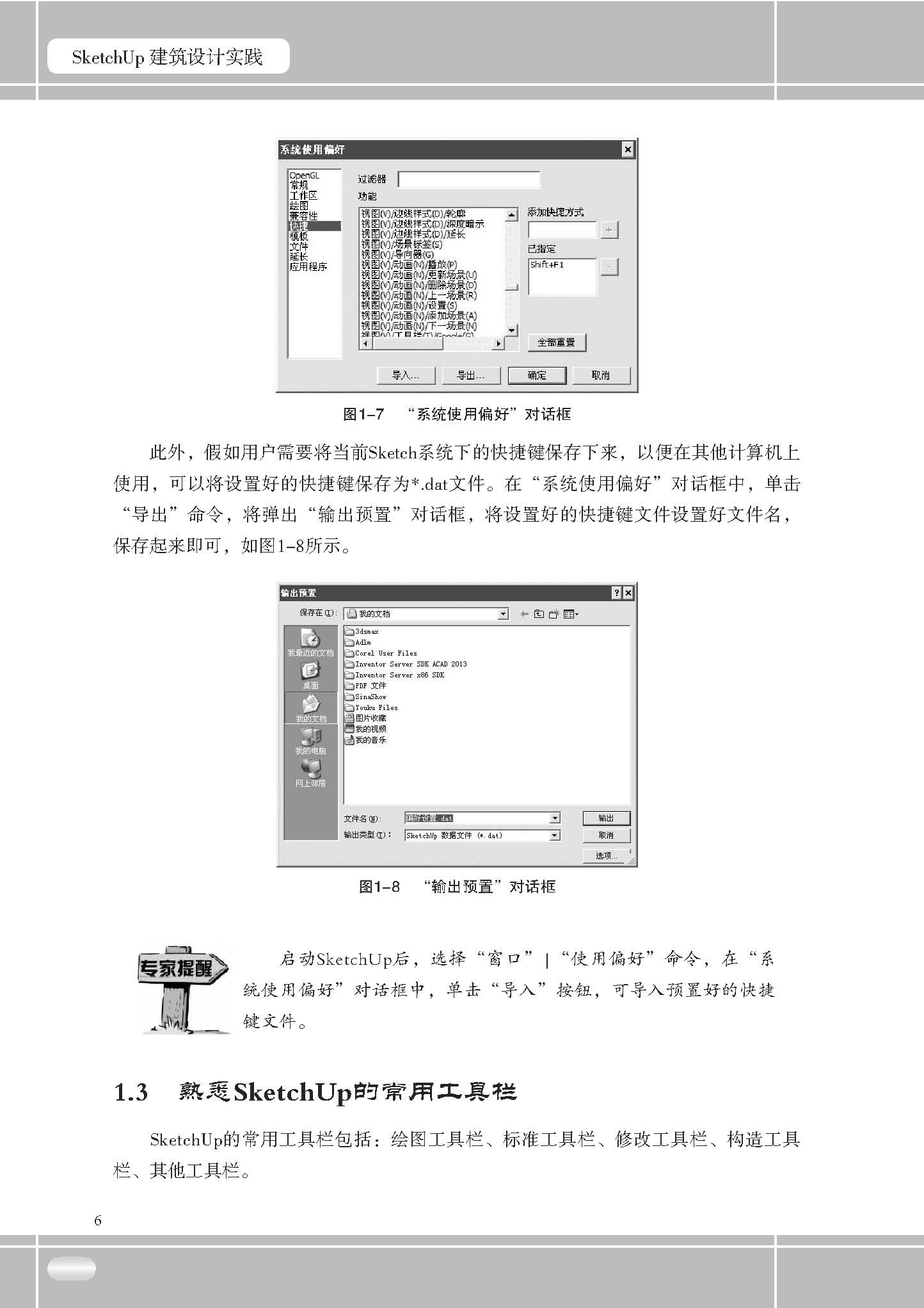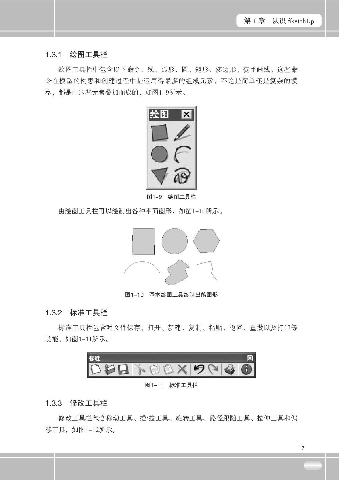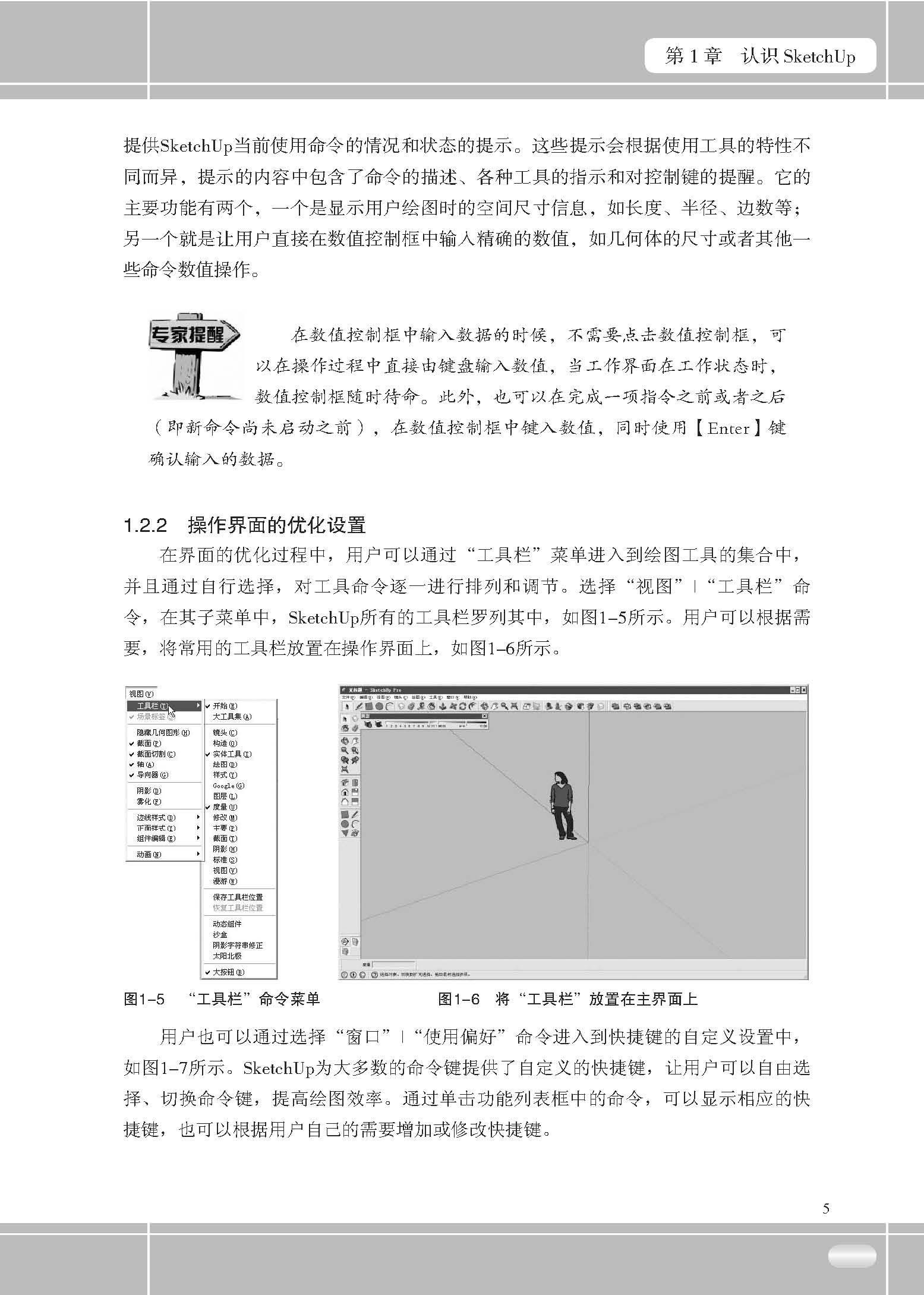 1.3熟悉SketchUp的常用工具欄… ………………………………………… 6