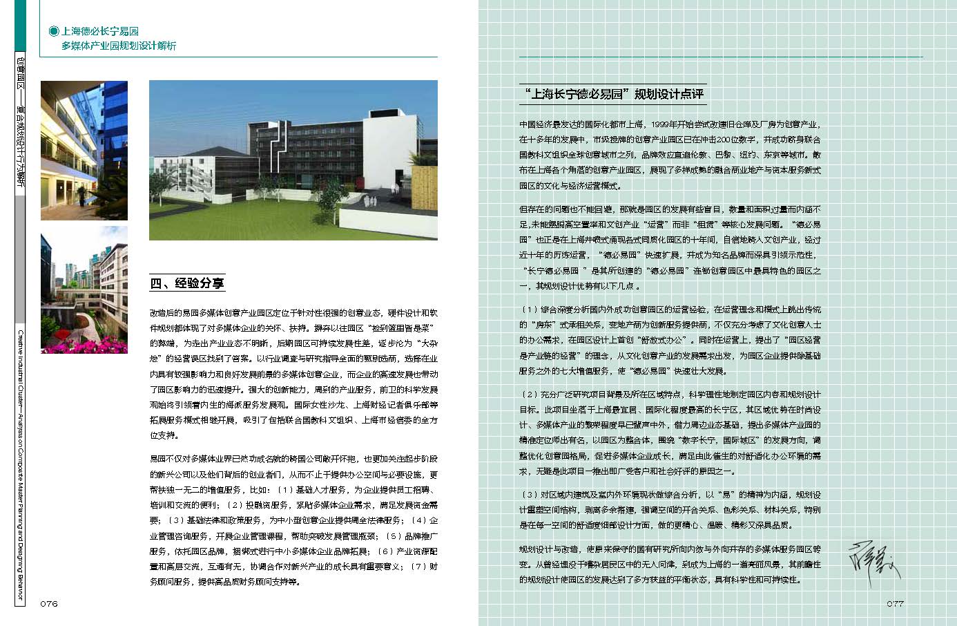 《創(chuàng)意園區(qū)——復(fù)合規(guī)劃設(shè)計行為解析》一書是創(chuàng)意產(chǎn)業(yè)領(lǐng)域第一本關(guān)于規(guī)劃設(shè)計的書,開拓市場上此類書先河,內(nèi)容專業(yè)性強,是一本受眾面很廣的專業(yè)書籍。經(jīng)過一年多的征集、篩選和研討,確定了國內(nèi)外11個經(jīng)典的文化創(chuàng)意產(chǎn)業(yè)園區(qū)的規(guī)劃設(shè)計案例。