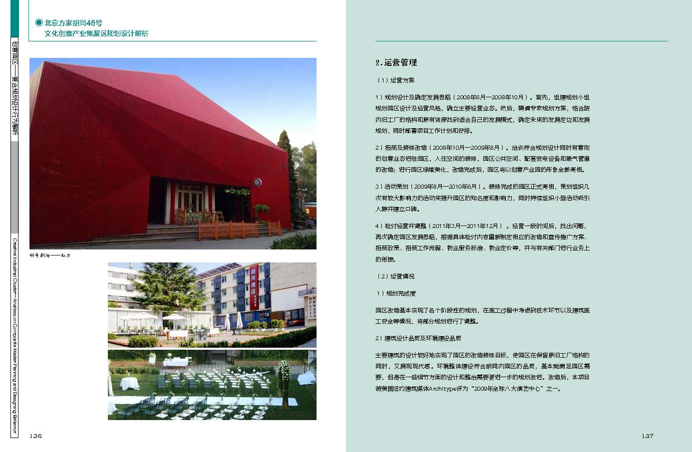 這些經(jīng)典的創(chuàng)意園區(qū)案例所涉及的園區(qū)產(chǎn)業(yè)功能定位、主題策劃、用地選擇、規(guī)劃設(shè)計理念、文化符號等內(nèi)容,對傾情于創(chuàng)意產(chǎn)業(yè)園區(qū)的設(shè)計者、建設(shè)者和管理者有所啟示和幫助。本書同時意在在文化創(chuàng)意產(chǎn)業(yè)園區(qū)的發(fā)展與建設(shè)中起到一個拋磚引玉的作用,為今后更多的文化創(chuàng)意產(chǎn)業(yè)園區(qū)樹立可以學習的榜樣,提供可參照的案例,為有關(guān)政府部門及設(shè)計師提供可參考的專業(yè)資料。