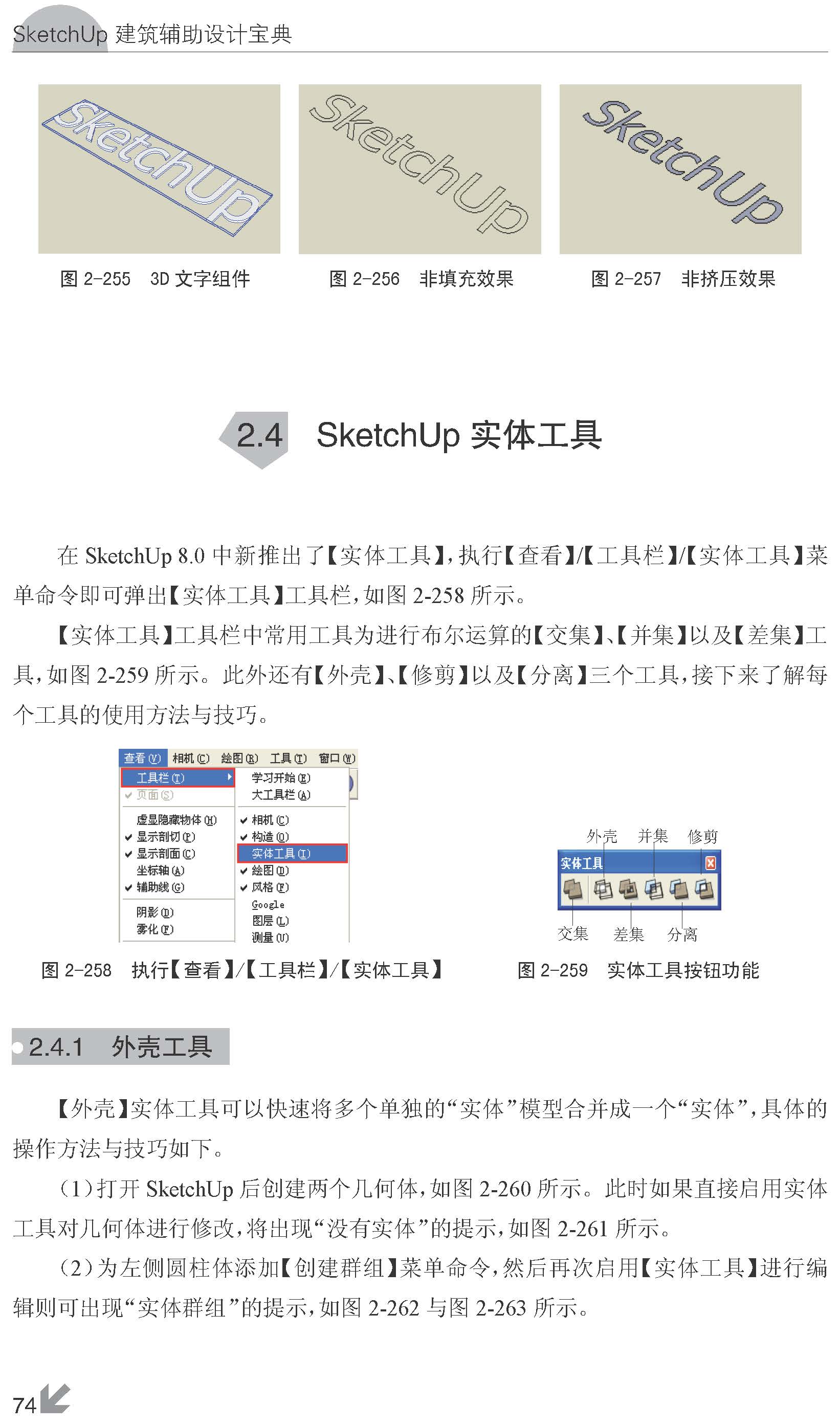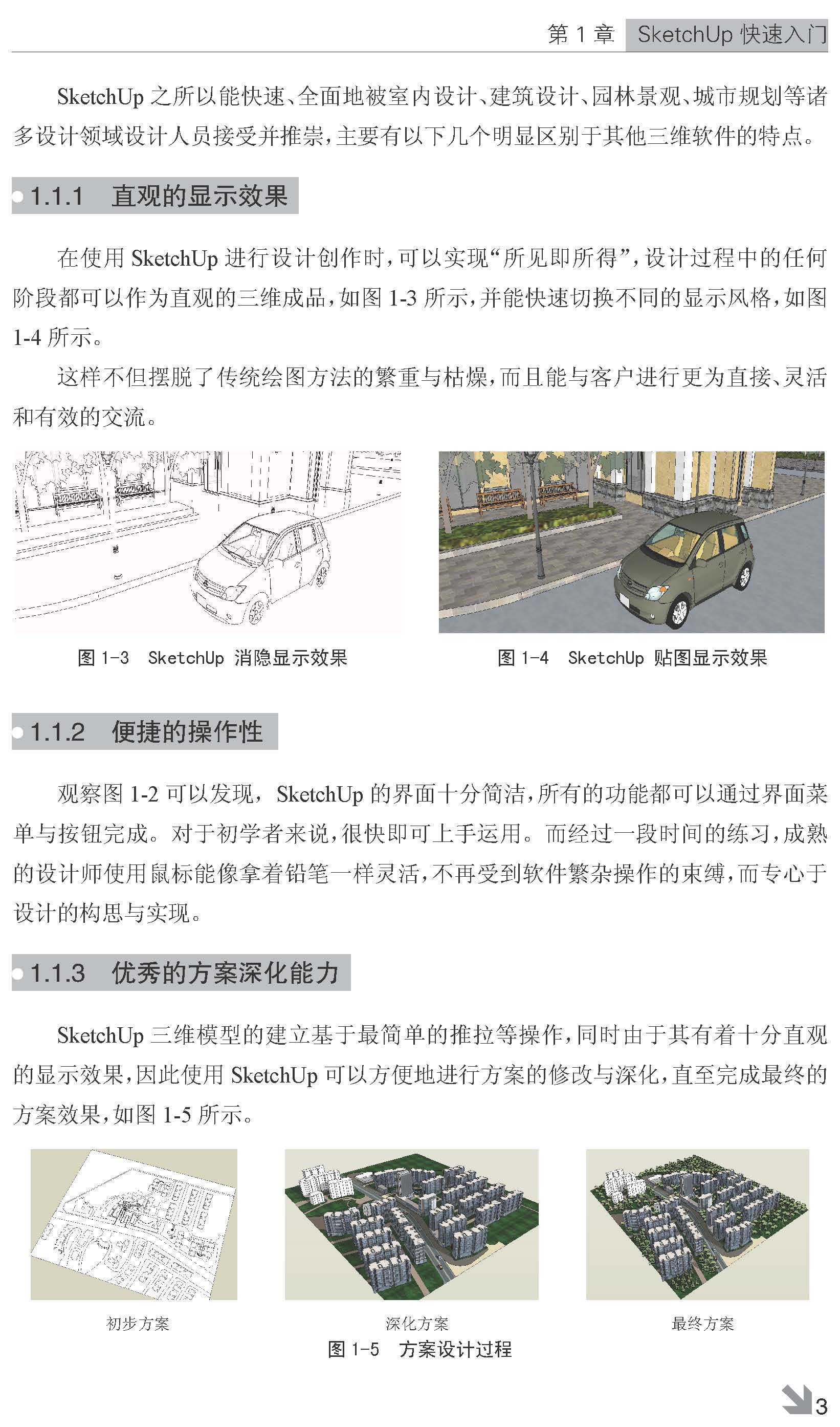 本書全面介紹了易學易用、功能強大的三維軟件SketchUp草圖大師,從實際應用的角度出發(fā),通過大量專業(yè)實例,由淺入深地講解了建筑草圖大師的基本知識,配套DVD教學光盤。本書適合廣大室內(nèi)設計、建筑設計、城市規(guī)劃設計、景觀設計的工作人員與相關(guān)專業(yè)的大中專院校學生學習使用,也可供房地產(chǎn)開發(fā)策劃人員、效果圖與動畫公司的從業(yè)人員參考。