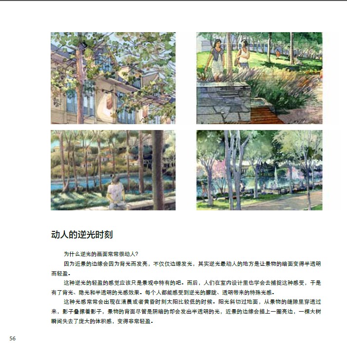 1.該手繪作品集呈現(xiàn)了美輪美奐的手繪表現(xiàn)作品, 這些作品是作者在現(xiàn)場(chǎng)的創(chuàng)作,展現(xiàn)了作者對(duì)現(xiàn)場(chǎng)敏銳的洞察力。作品不僅是景觀效果的唯美展現(xiàn),更是與設(shè)計(jì)方最有效的溝通。對(duì)每一位設(shè)計(jì)師都會(huì)有啟發(fā)。