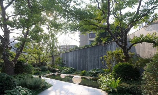 公寓內(nèi)的景觀園林,被打造為成都獨有的“叢林秘境花園”,以藝術水幕墻的設計,運用多品類的植物、石材、金屬等不同材料創(chuàng)造出新穎、別具一格的流動景觀效果。