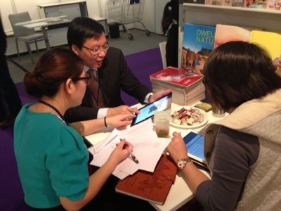 據(jù)鳳凰空間李副總經(jīng)理,版權(quán)經(jīng)理吳紅敏、陳尚婷介紹,我社在5天的書展上,與近40家境外出版、代理機(jī)構(gòu)的版權(quán)負(fù)責(zé)人進(jìn)行了約見,其中既有美國的普林斯頓(Princeton)建筑出版社,Parkstone International,Architecture, Art;英國的勞倫斯·金(Laurence King)出版社,PAPADAKIS;新加坡的RHED出版社,Basheer Graphic Books;印度的DataWork;德國的細(xì)部(Detail)出版社,Blottner Verlag GmbH;澳大利亞的圖像(Images)出版集團(tuán),意大利的Mondadori Electa出版社;瑞士的Braun出版社;韓國DAMDI出版社;日本的X-Knowledge出版社等多家出版公司,達(dá)成了五十多本圖書與雜志的版權(quán)引進(jìn)、版權(quán)輸出、共版圖書意向,并現(xiàn)場簽約西班牙a+t雜志兩本。