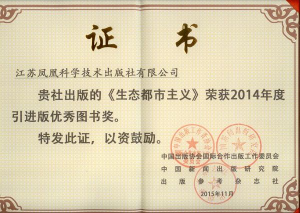 《生態(tài)都市主義》榮獲2014年度引進(jìn)版優(yōu)秀圖書(shū)獎(jiǎng)