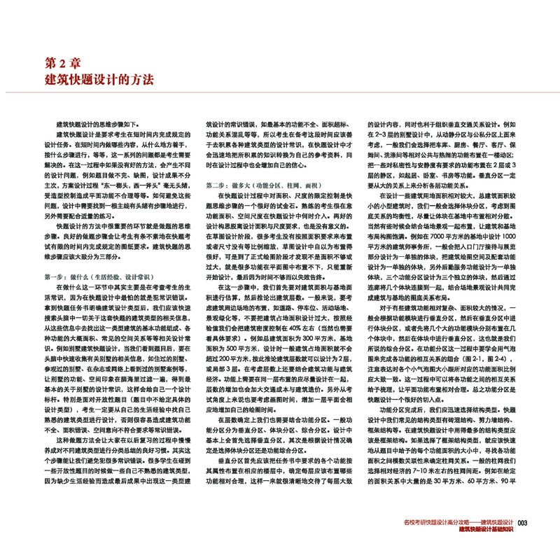 2.有大量歷年考研真題講解,結(jié)合海上藝號(hào)學(xué)員考研高分作品的列舉與點(diǎn)評(píng),緊密結(jié)合考試實(shí)際,是備考建筑學(xué)等專業(yè)研究生入學(xué)快題考試的必備輔導(dǎo)教材。