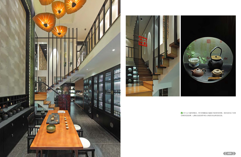 縱觀此前的兩期著作,《茶樓Ⅰ》收錄的茶空間囊括了各式濃厚新東方風格的設計作品,《茶樓Ⅱ》則主線強調簡約時尚的中式風格,引入了較多簡中風格的茶空間,再是這期的《茶樓Ⅲ》包容性較之前更為突出,在風格上推陳出新,跳出東方文化的藩籬與國際接軌,有效借鑒并大膽進行了詮釋,豐富了這場視覺盛宴的同時引領茶樓設計從文化包裝的角度提升可觀性。無論是設計、文化、商業(yè)都通過茶樓這個載體,陳述了室內設計師于設計之外對茶文化與市場經營的多重深刻的體會和認識,即賦予茶空間文化精神的同時,塑造了更實質的價值。