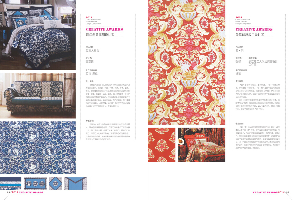 本書收錄大賽評委會評出的金獎1名、銀獎3名、銅獎5名、優秀獎30名、最佳創意設計應用獎5名,最佳設計創新意識獎、最佳設計題材獎、最佳手繪技法獎、最佳傳統紋樣表現獎四個獎項各兩名,共52件作品,全面展示,圖文并茂。