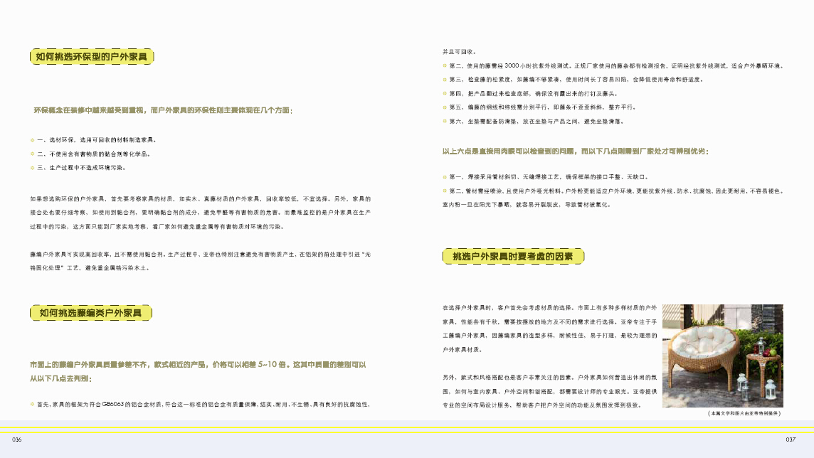 2.精準(zhǔn)文字搭配高清圖片的方式,講解室外家具搭配的歷史、分類、材質(zhì)、保養(yǎng)等,使讀者對(duì)主題有更全面和深入的認(rèn)識(shí)。