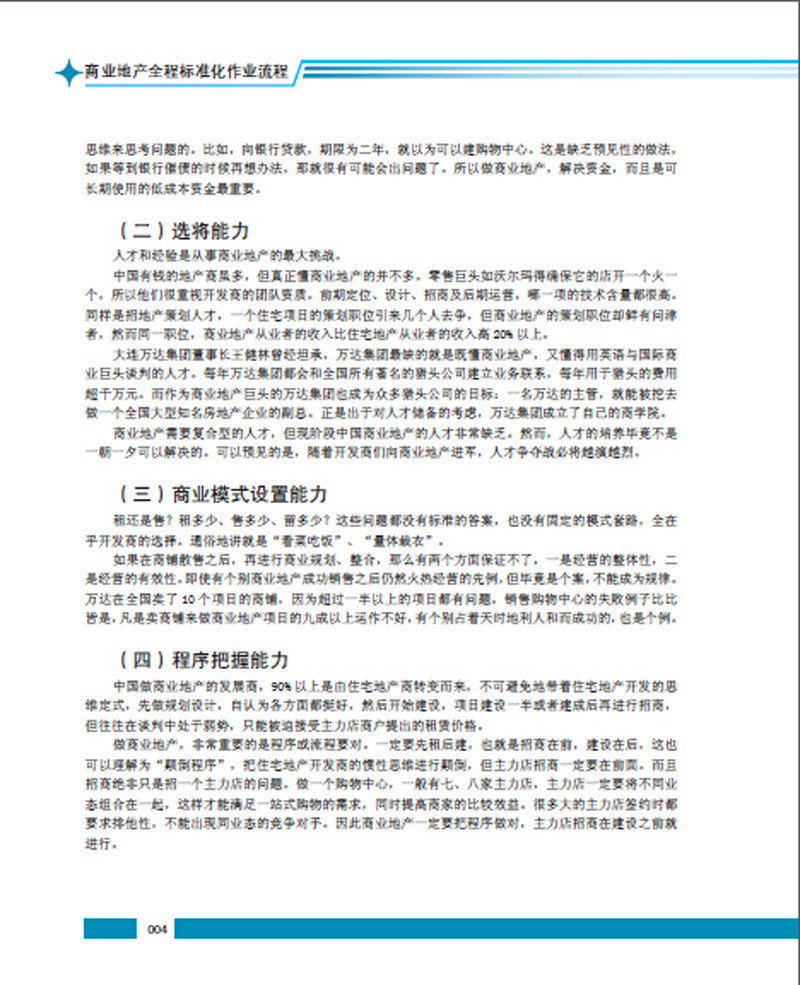 2、商業(yè)地產(chǎn)聯(lián)盟推薦的專業(yè)讀物,涵蓋開發(fā)到管理的整個商業(yè)地產(chǎn)作業(yè)流程,普遍適用于所有類型的商業(yè)地產(chǎn)項目的實用性專業(yè)指導叢書