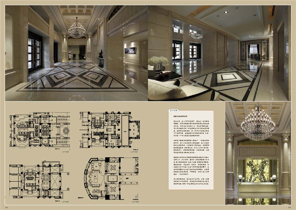 豪宅代表一定的尊貴身份,豪宅的公共區(qū)域可以說是一個半私密的活動空間。精英階層文化動態(tài)對公共空間設(shè)計會產(chǎn)生一定的影響。首先是尊貴。公共空間也是一個高貴的地方,代表出入使用者一定的檔次,就像歐美百年歷史的俱樂部一樣,有會員限制規(guī)定。會員有一定的社會地位,是身份的象征。豪宅也是相同的精英階層聚集之處,公共空間設(shè)計要體現(xiàn)優(yōu)越感,講究用料、選材,以奢華的空間氛圍彰顯尊貴的社會地位。再者是獨特。公共空間設(shè)計應(yīng)該悉心剪裁,有個性、特色,給人留下深刻的印象。獨特的設(shè)計能夠產(chǎn)生獨特的氣質(zhì),這種與眾不同、唯我獨尊的感覺,往往能夠增加項目的價值。獨特的設(shè)計可以從多個方面來推敲:例如,有針對性地剪裁空間,利用獨特的空間條件及其他環(huán)境要素,也可取材于歷史、文化和藝術(shù)背景,同時考慮空間功能定位的需求;設(shè)計師可將創(chuàng)作元素表現(xiàn)于建筑造型、燈具及家具造型、色彩及材料利用、裝修節(jié)點、擺設(shè)及掛畫等,以此塑造獨特的空間個性。