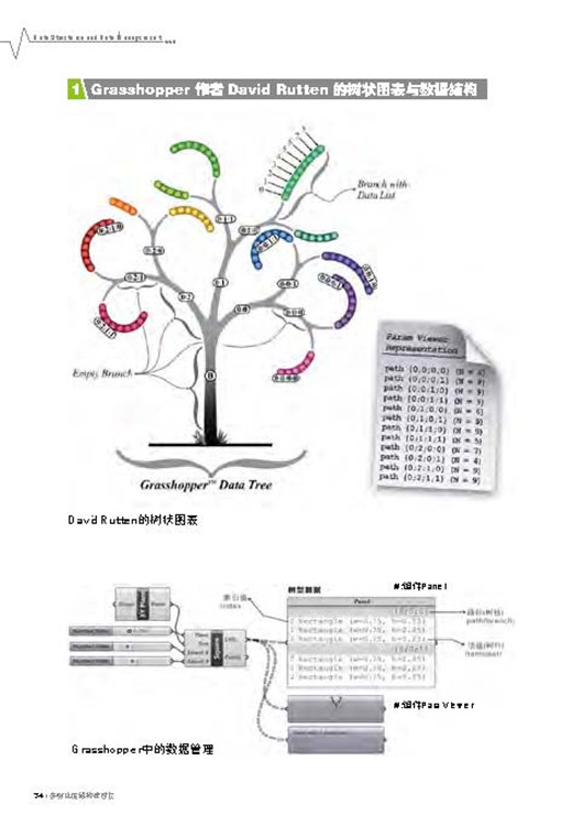 “數(shù)據(jù)結(jié)構(gòu)與數(shù)據(jù)管理”部分是Grasshopper程序編寫的核心技術(shù),如果需要更加智能化的輔助甚至主導(dǎo)設(shè)計,需要熟知數(shù)據(jù)的組織方式和管理方法。本部分詳細闡述了List列表與Tree樹型數(shù)據(jù)的數(shù)據(jù)結(jié)構(gòu),并將對核心技術(shù)的應(yīng)用方法貫穿于整本書的始終。同時講述了外部數(shù)據(jù),例如高程數(shù)據(jù)調(diào)入的方法;