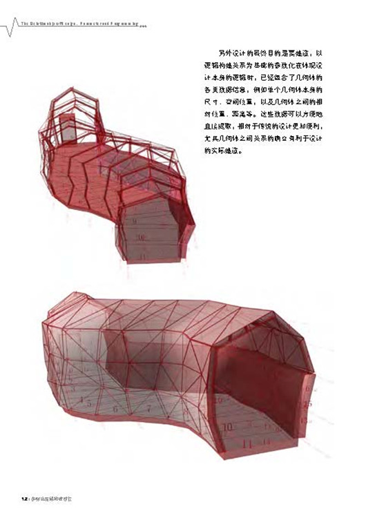 《參數(shù)化邏輯構(gòu)建過程》一方面強調(diào)程序編寫的核心技術(shù),同時強調(diào)實際的運用,不斷的將學(xué)習(xí)者從傳統(tǒng)的三維模型直接構(gòu)建的方法中引入到基于數(shù)據(jù)管理的編程思維構(gòu)建模型和進行設(shè)計分析的方法上。