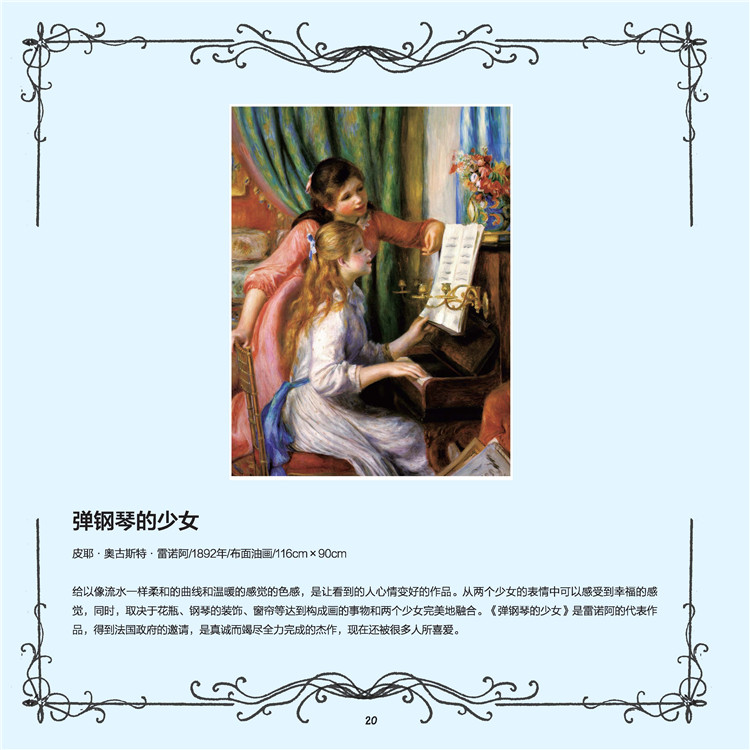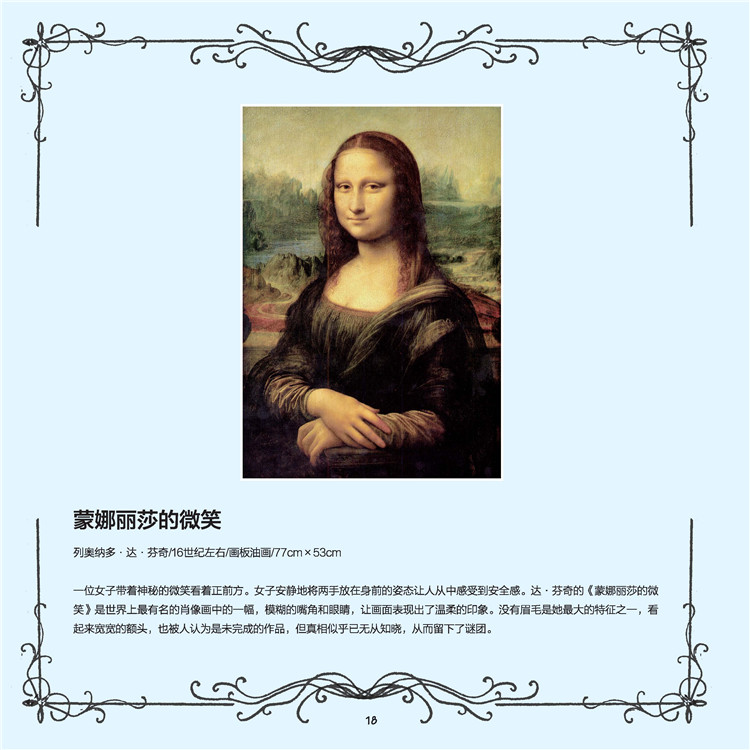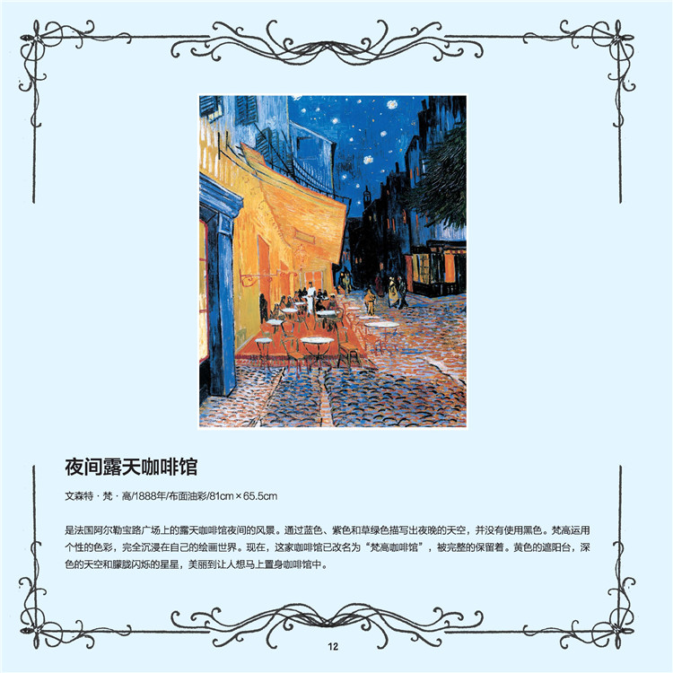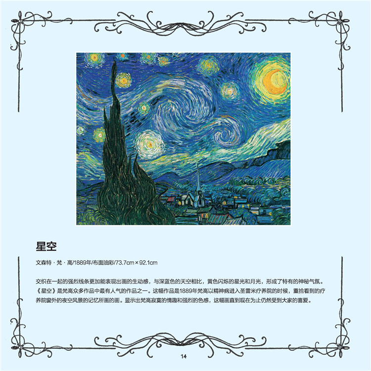 本書是一本由韓國(guó)引進(jìn)的涂色書,書籍內(nèi)有三十多幅世界級(jí)名畫,如《向日葵》、《星空》、《戴珍珠耳環(huán)的少女》等。由專業(yè)美術(shù)繪畫師繪制底稿,不但在底稿中標(biāo)注出陰影、高光等區(qū)域,還在每幅黑白底稿旁配以同等大小的原版畫作和原畫賞析文字。