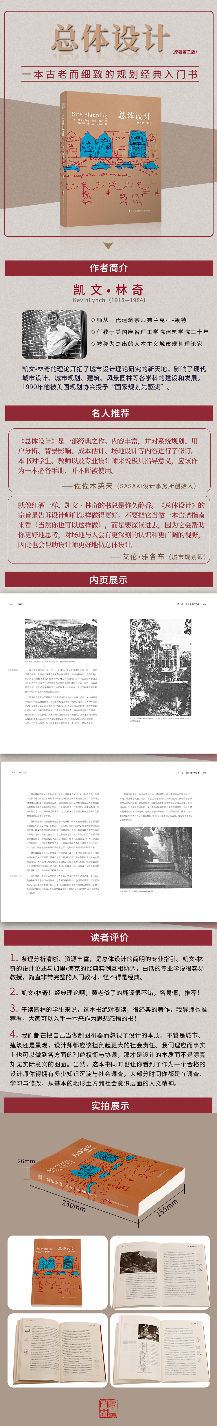 一本古老而細(xì)致的入門(mén)書(shū),但其中關(guān)于設(shè)計(jì)的全過(guò)程以及對(duì)基地、行為、景觀、土方及公共管線、社會(huì)影響、利益權(quán)衡等,會(huì)讓你對(duì)一個(gè)完整的設(shè)計(jì)和設(shè)計(jì)師該盡到的社會(huì)責(zé)任有更進(jìn)一步的認(rèn)識(shí)。我們都在把自己當(dāng)做制圖機(jī)器而忽視了設(shè)計(jì)的本質(zhì)。不管是城市、建筑還是景觀,設(shè)計(jì)師都應(yīng)該擔(dān)負(fù)起更大的社會(huì)責(zé)任。我們理應(yīng)而事實(shí)上也可以做到各方面的利益權(quán)衡與協(xié)調(diào),那才是設(shè)計(jì)的本質(zhì)而不是漂亮卻無(wú)實(shí)際意義的圖面。當(dāng)然,這本書(shū)同時(shí)也讓你看到了作為一個(gè)合格的設(shè)計(jì)師你得擁有多少知識(shí)沉淀與社會(huì)調(diào)查,大部分時(shí)間你都是在調(diào)查、學(xué)習(xí)與修改,從最基本的地形土方到社會(huì)意識(shí)層面的人文精神。