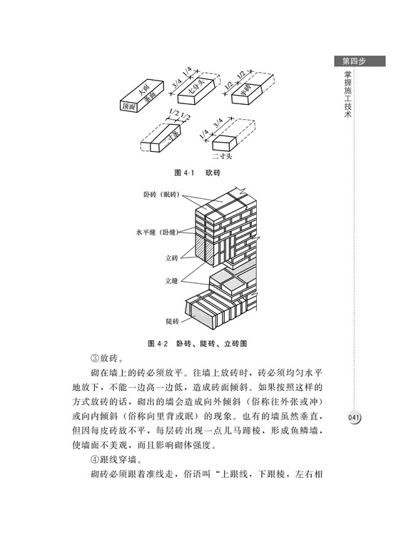 本書以住房和城鄉建設部建筑工程施工職業技能標準為編寫依據,將砌筑工上崗分為五步:第一步———確保上崗資格;第二步———遵守行業規范;第三步———熟悉材料工具;第四步———掌握施工技術;第五步———保障施工安全。